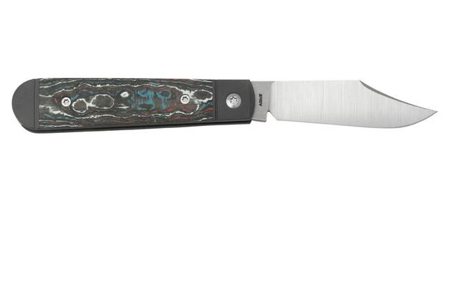 With the Jack Wolf Knives Big Bro Fat Carbon Nebula, Benjamin Belkin of Jack Wolf Knives once again releases a stunning design with a fantastic finish. The Sleeveboard pattern of this knife owes its name to a sleeve board: a small ironing board specifically intended to help you iron small pieces of clothing, such as sleeves, trouser legs, ties and children’s clothes. The Big Bro is the slightly bigger version of the Jack Wolf Little Bro.