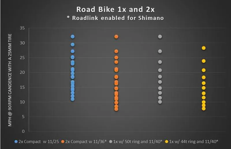 - The RoadLink is optimized for the 10- and 11-speed Shimano road derailleur geometry. It also works very well with 9-speed road groups, all SRAM groups, and Campagnolo derailleurs with cassettes up to 11-36t